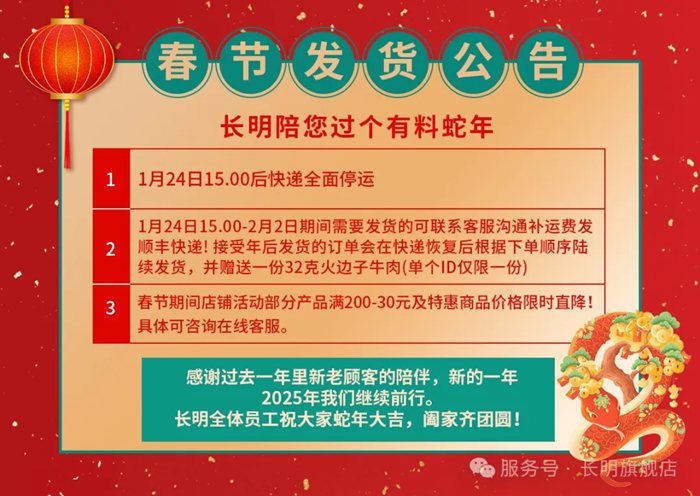 值此新春佳節(jié),長明集團全體員工祝愿大家新春快樂、闔家團圓,蛇年行大運。